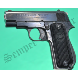 - Culasse marquée : « 7.65 COURT 9 COUPS "UNIQUE" – Manufacture d’Armes des Pyrénées, Hendaye »